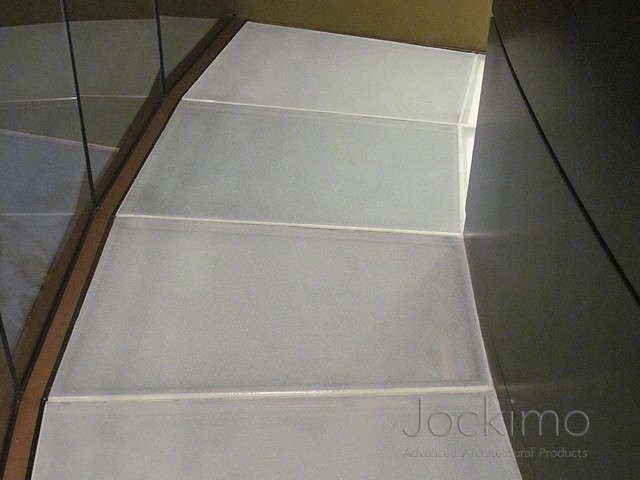 Client: Private Residence - Milwaukee, WI Glass: Jockimo Privacy Frost™ glass flooring Design: Pavlecic Trudeau Jockimo’s GlassGrit™Privacy Frost™ glass flooring is used on this residential bridge project.